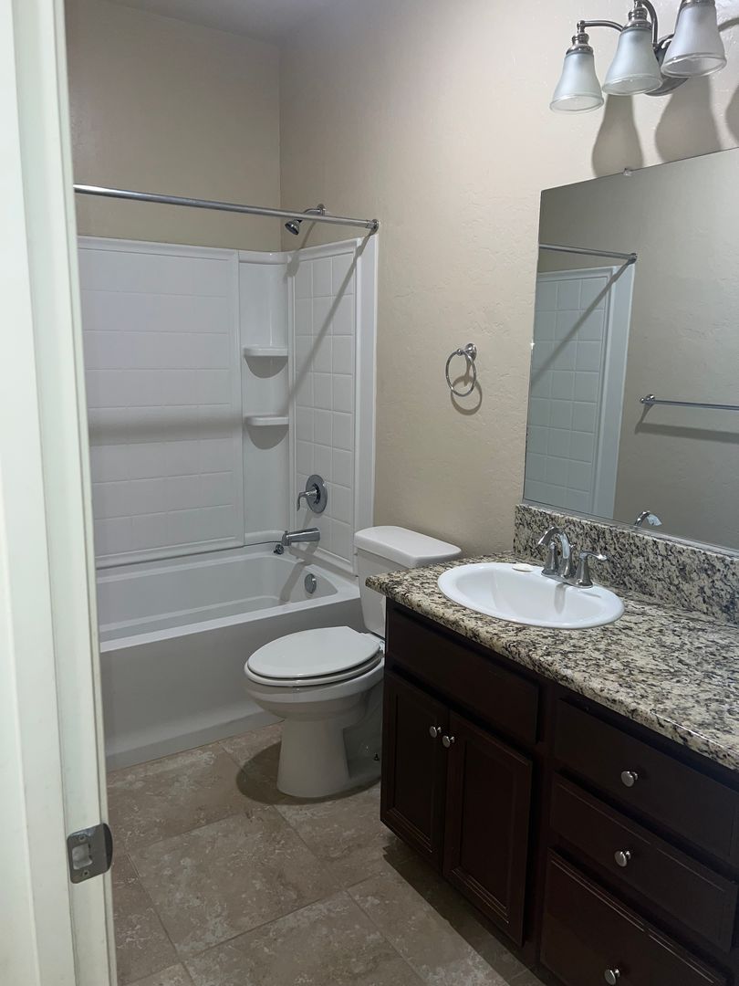 With three comfortable bedrooms and two well-appointed bathrooms each with double sinks, there’s room for everyone. A versatile bonus room at the front of the home provides a flexible space that can be used as a 4th bedroom, play room or home office. Additional features include indoor laundry (Washer/Dryer not included), a cozy front porch for morning coffee, and a covered backyard patio.