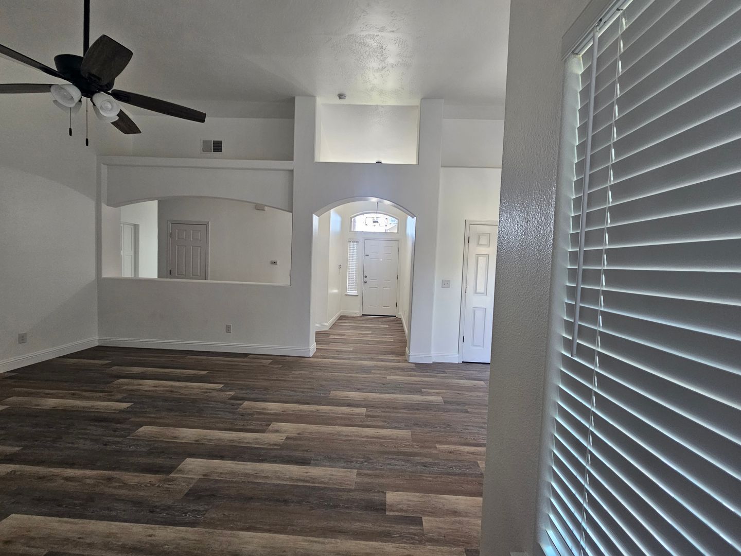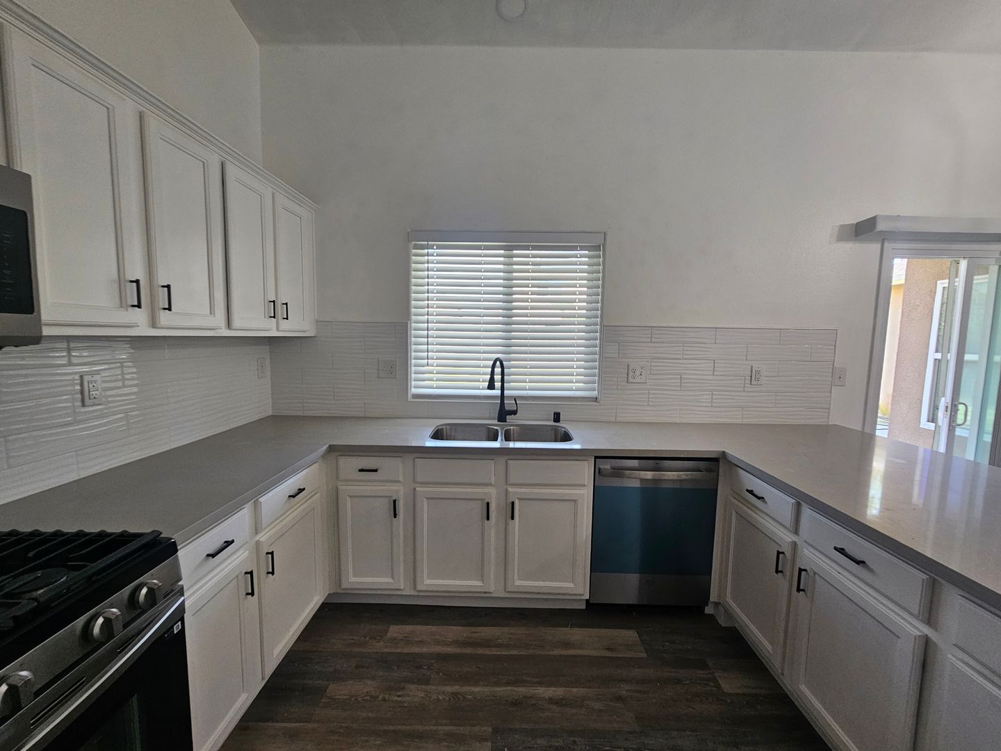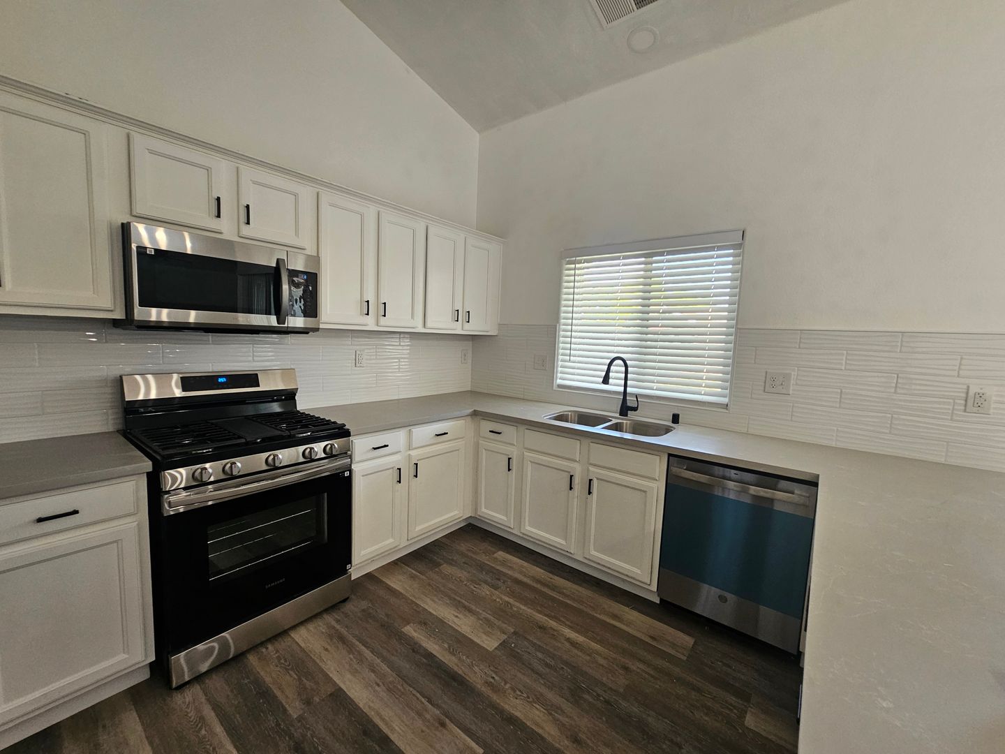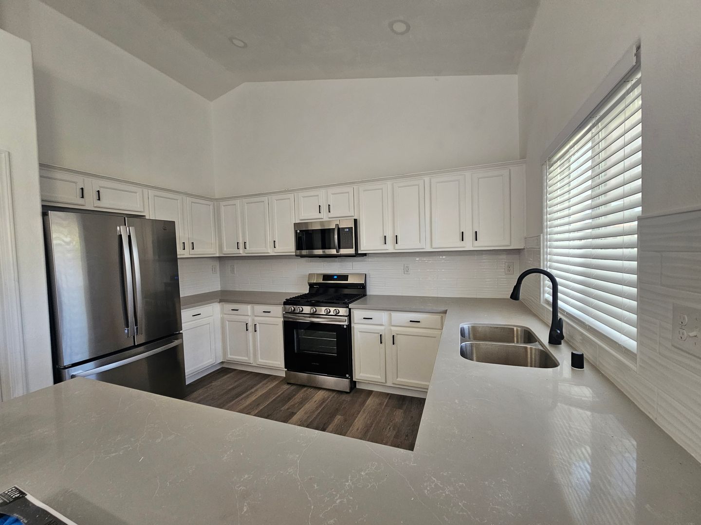 4-bedroom, 2-bathroom home with a spacious, open floor plan. Freshly painted, kitchen features ample counter space and new appliances with a pantry. The primary suite includes a private en-suite bathroom and generous closet space. Three additional bedrooms offer flexibility for family, guests, or a home office. Large, fully fenced backyard. Additional features include an attached 2-car garage, central heating and cooling. Lawn service included!! Easy access to local amenities, schools, and parks.