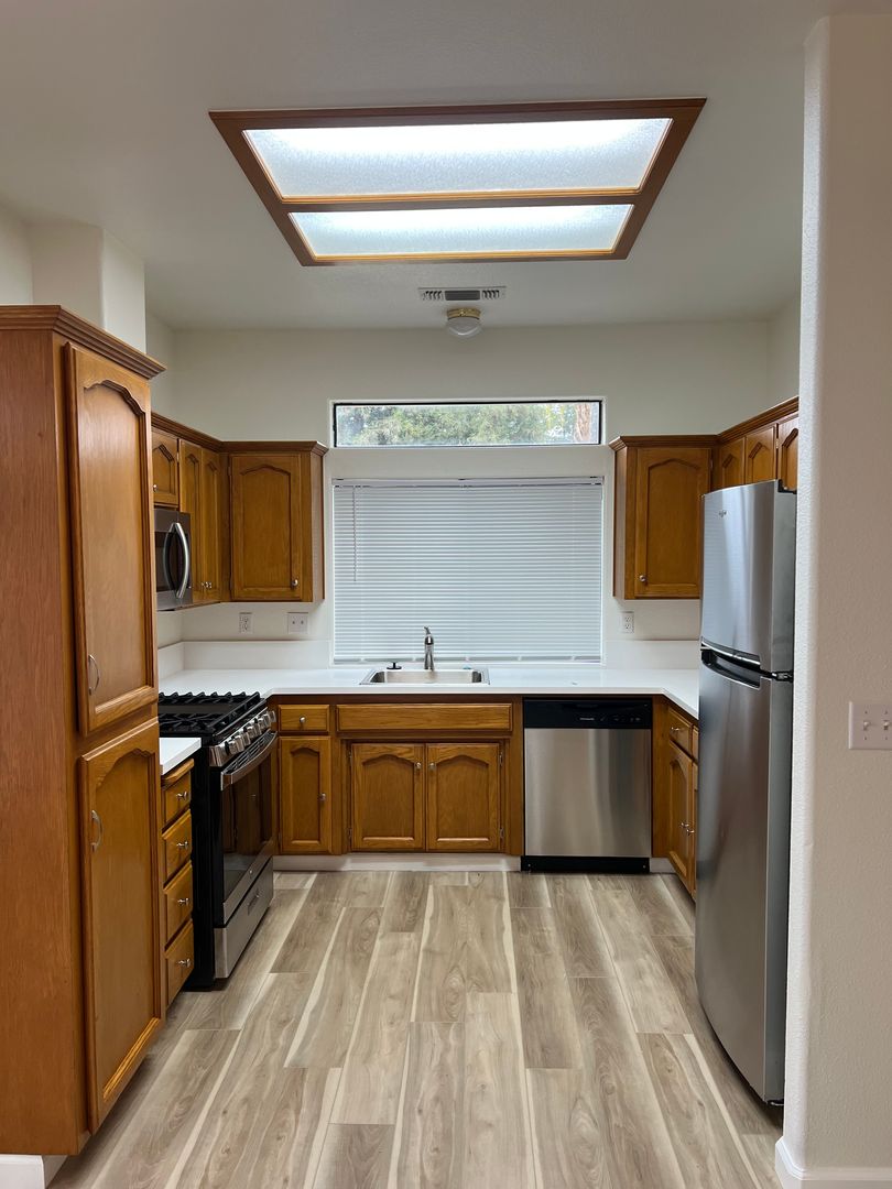 Beautifully renovated and move-in ready, this spacious 4-bedroom, 2-bath home offers 1,410 sq ft of comfortable living. Enjoy brand-new flooring, fresh interior paint, modern lighting, and new blinds throughout, creating a bright and contemporary feel. There is a refrigerator, stove, dishwasher and microwave. The home features air conditioning for year-round comfort, and gardener and pest control are included in the rent for easy, low-maintenance living. A perfect blend of style, space, and convenience. Attached 2 car garage. Large backyard.